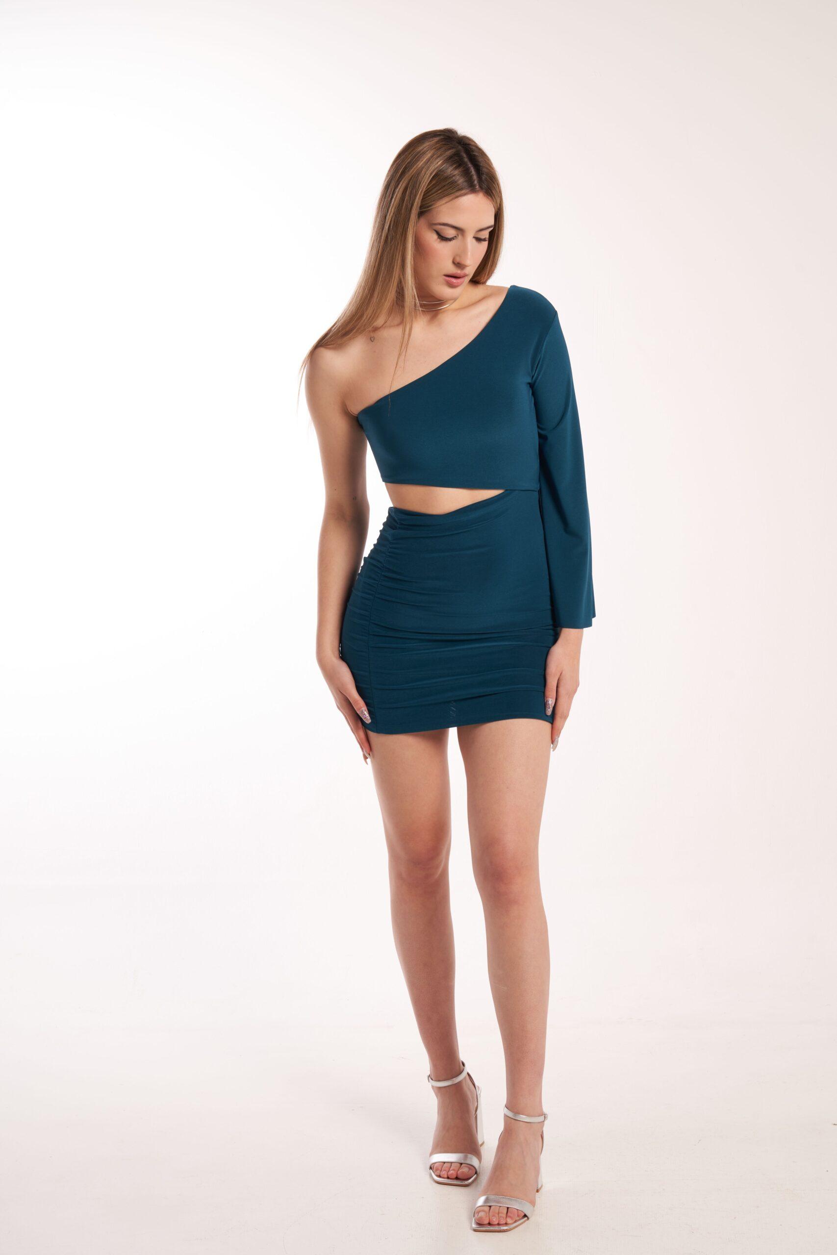 IRRESISTIBLE! Así te verás con este vestido , y es que el diseño Cut Out está hecho para lucir tu figura. Con el te sentirás la reina de la fiesta, su tejido elástico es suave y se ciñe perfectamente a tu cuerpo, el corte asimétrico y la manga acampanada le dan el toque original sin olvidarnos de la espectacular apertura en la cintura. Lleva almohadillas incorporadas en el pecho por lo que no hará falta que utilices sujetador.