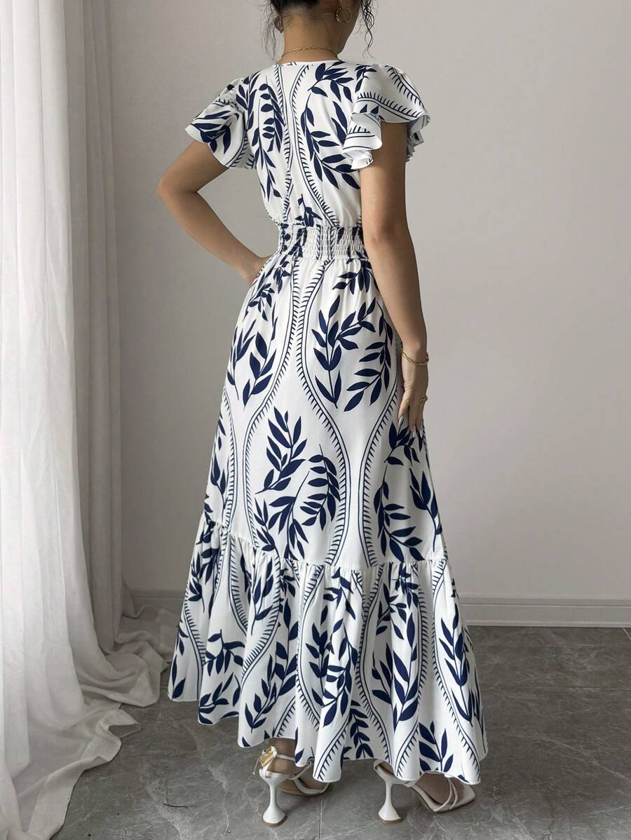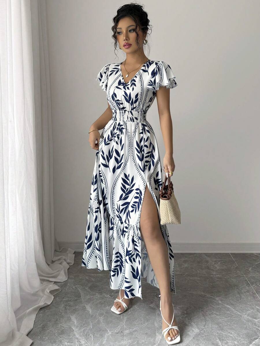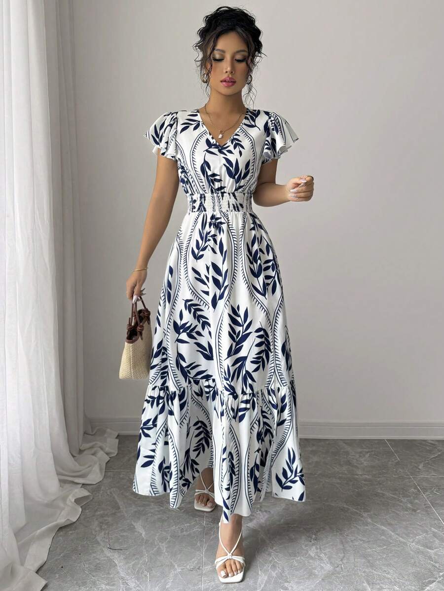 Composición: 95% Soft Poliéster (símil algodón), 5% Elastano. Este vestido largo de corte en “A” resalta por su talle alto y escote en “V” profundo que estiliza la silueta. Está confeccionado en tela tejida no elástica y sin forro, lo que le da frescura y caída ligera. Sus mangas cortas con volantes y el bajo fruncido aportan dinamismo y un aire femenino, mientras que el estampado integral de plantas en tonos multicolor lo convierte en una pieza vibrante y moderna. Para su cuidado, se recomienda lavado a máquina evitando la limpieza en seco.