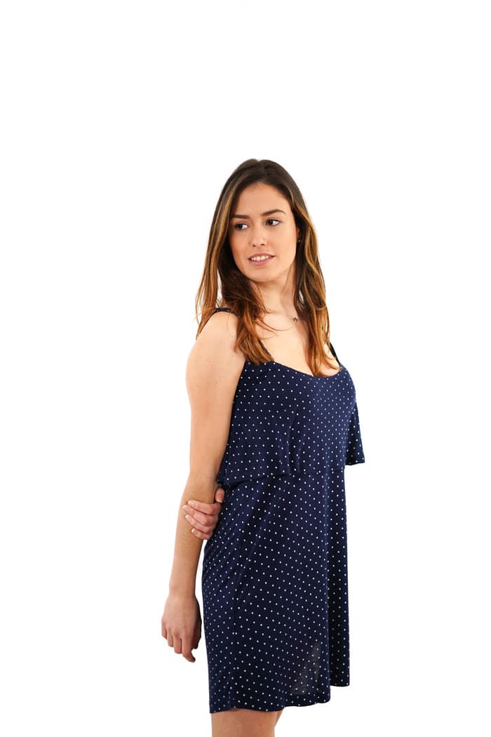 Vestido de tirantes con topos blancos al más estilo Pretty Woman. Los vestidos con topos marcan tendencia esta temporada.