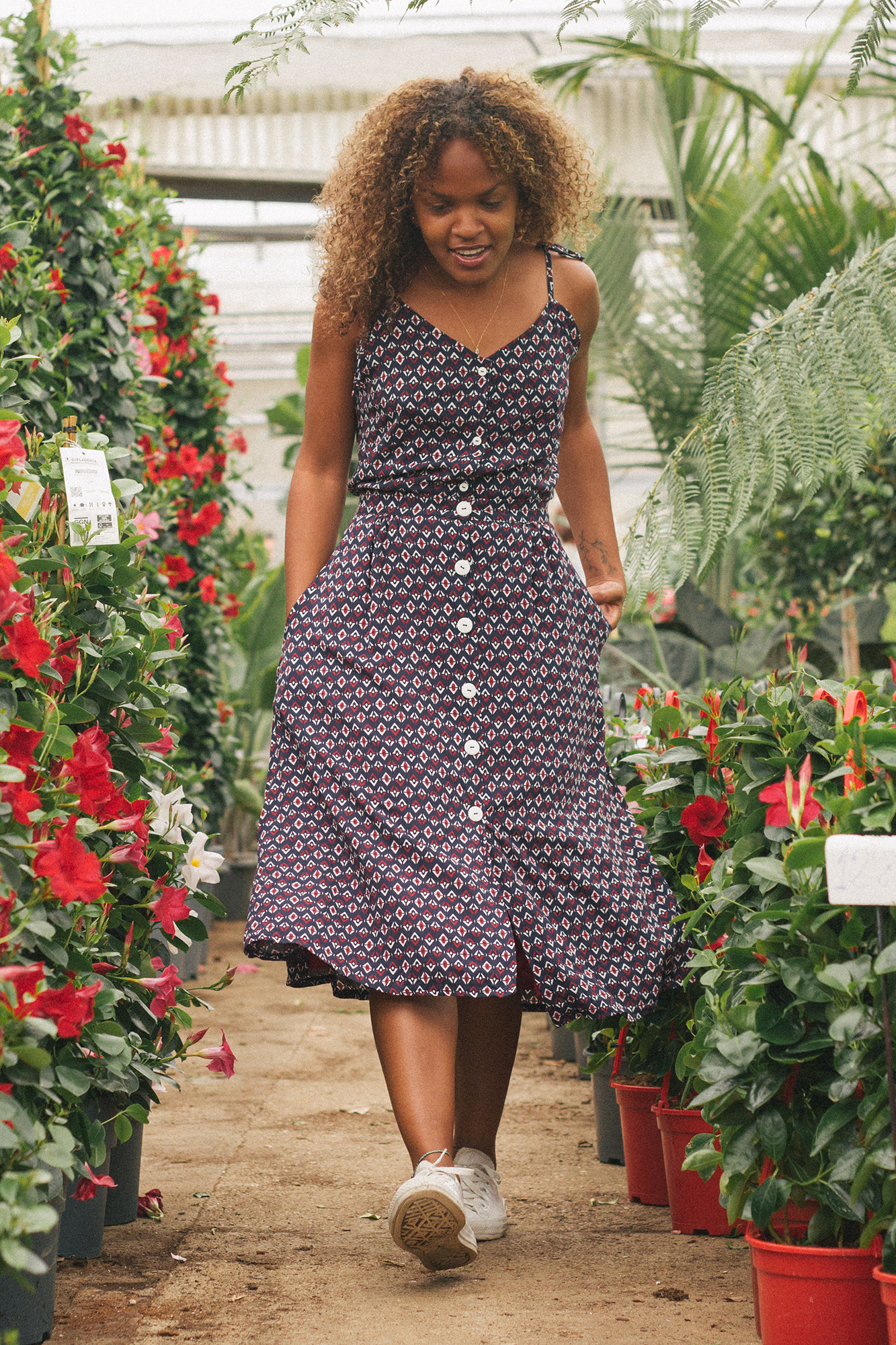 Vestido de dos piezas, falda y camisa, de viscosa estampada, un tejido increíblemente ligero y agradable al tacto. Cierre de botones en el delantero. 100% viscosa.