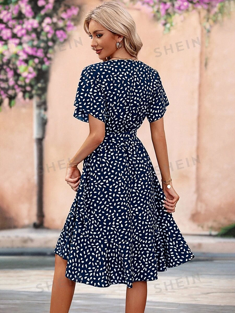 Composición: 100% Soft Poliéster (símil algodón). Este vestido midi azul marino con cinturón y bajo fruncido combina comodidad y estilo casual. Su escote redondo y mangas tulipán aportan un toque femenino, mientras que el talle alto y el corte A línea favorecen la silueta. Con su estampado integral y detalles refinados, es ideal para cualquier ocasión, desde el trabajo hasta salidas con amigos.
