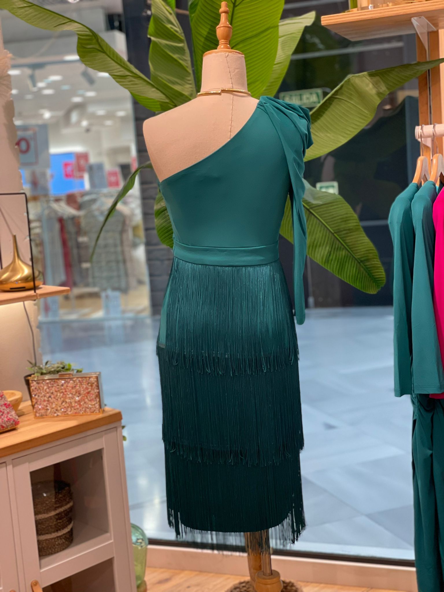 Este vestido de corte Midi es perfecto tanto para un evento de día como de noche. El color azul turquesa es precioso y los flecos de la falda dan mucho movimiento al andar.