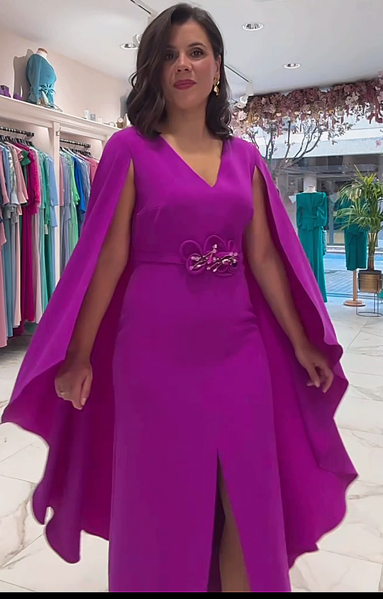 Elegante vestido con una sencillez brillante que marca tendencia con su espectacular capa