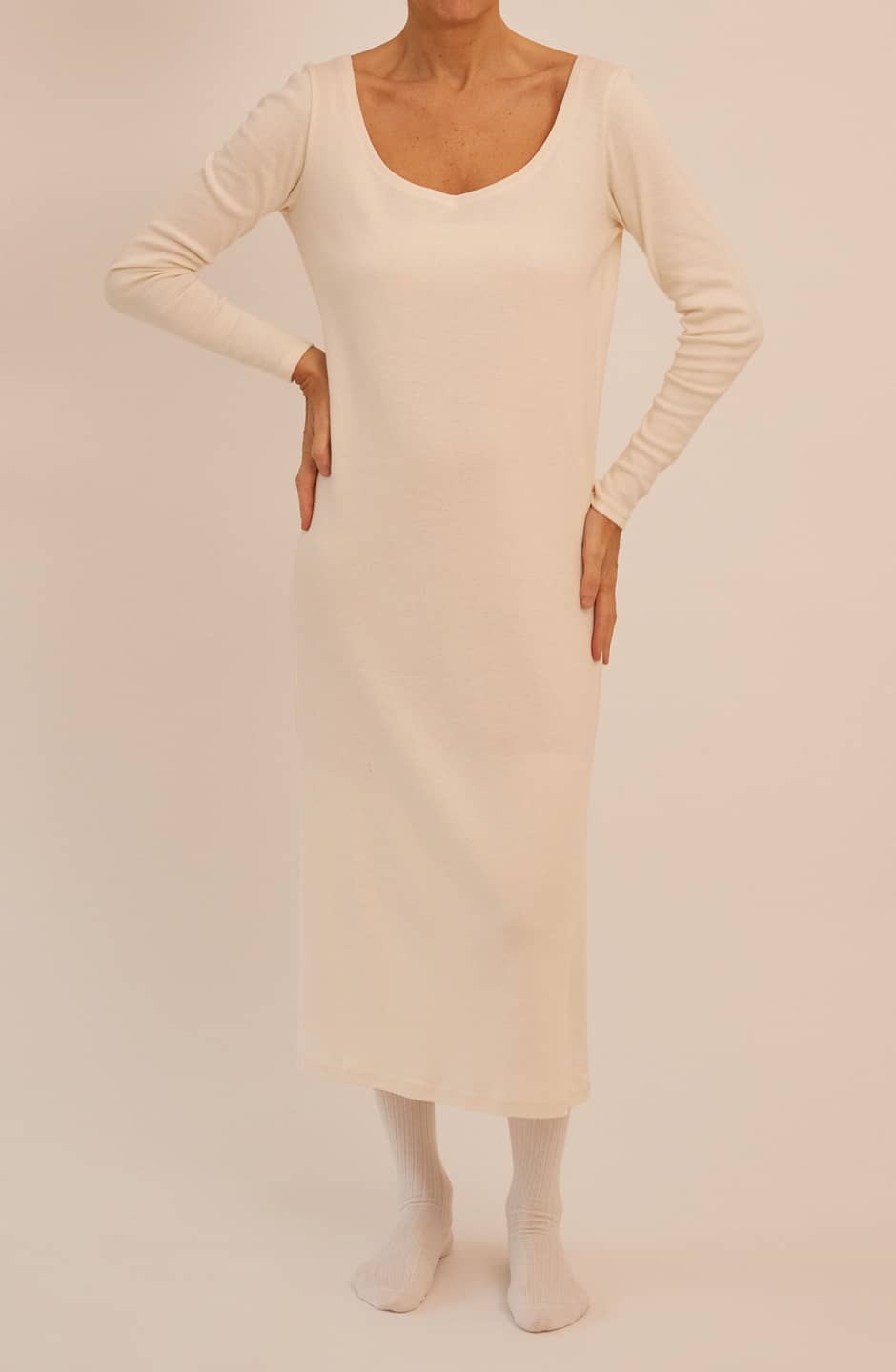 Vestido Pell de manga larga y 100% algodón orgánico. Los dos colores nacen naturalmente de la planta con lo que no lleva ningún proceso de tinte perjudicial para tu piel. Este vestido es un regalo para ti y para tu cuerpo. Es suave, ligero y se adapta perfectamente a los diferentes volúmenes y formas sin que lo notes. Muy cómodo para el día a día y fácilmente combinable con la ropa que ya tengas en tu armario. Es un básico que te puede dar mucho juego esta temporada. Esta prenda, junto con el body PELL, forma parte de una cápsula en colaboración con mi amiga Sandra de Filla de Zoe. En estas fotos nosotras mismas hemos sido las protagonistas y hemos diseñado y producido esta colección muy desde el corazón. Está hecha para abrazarte y acompañarte en tu cotidiano. Hay dos tallas disponibles, la M y la L. La talla M abarca las tallas S y M (Una talla L a la que le gusta el vestido más ceñido también puede encajar muy bien) y la talla L, abarca una talla L y XL. Se adapta muy bien a los diferentes cuerpos y formas, con lo que la elección de la talla depende de los gustos de cada una al llevar este tipo de prenda.