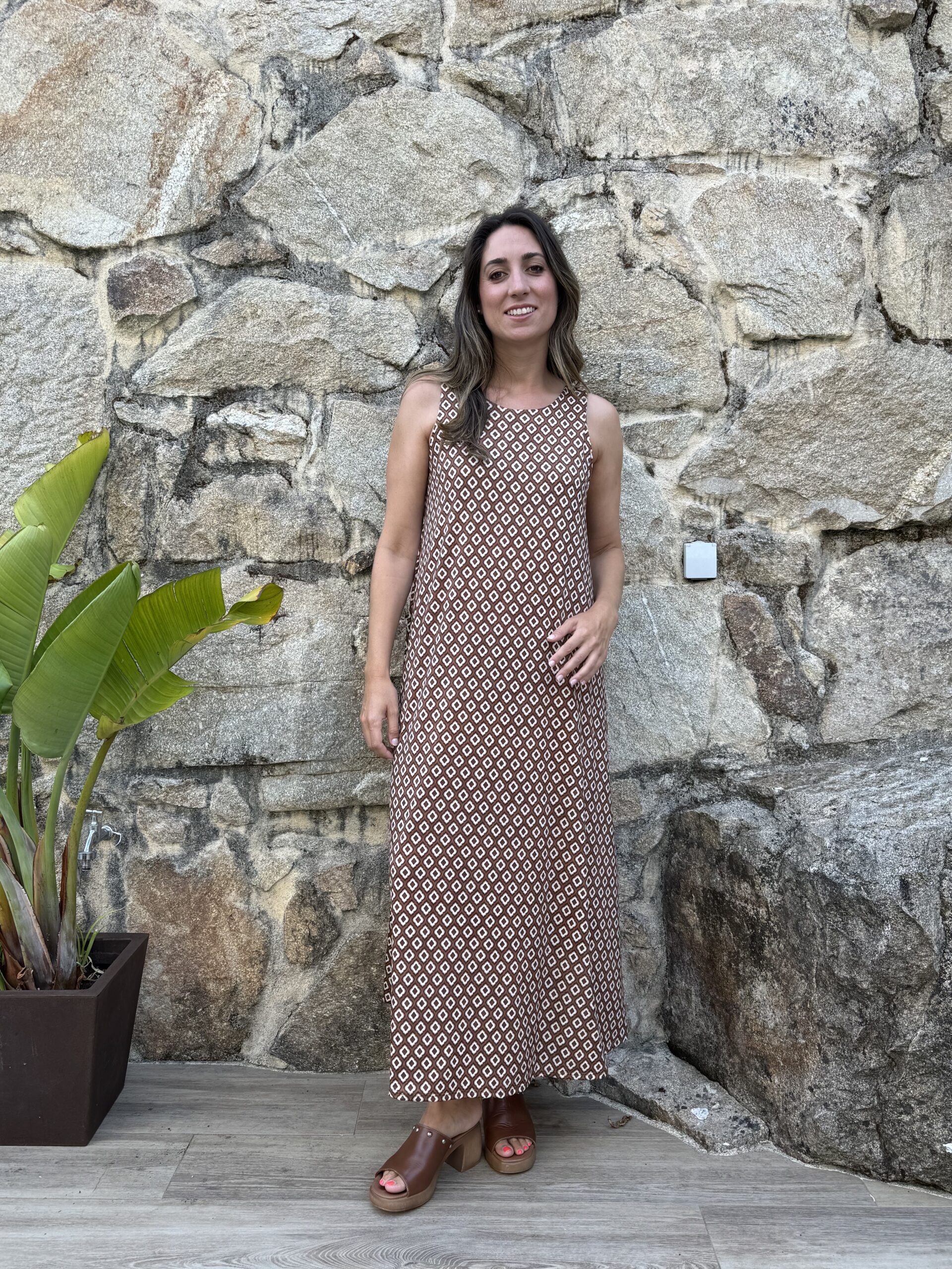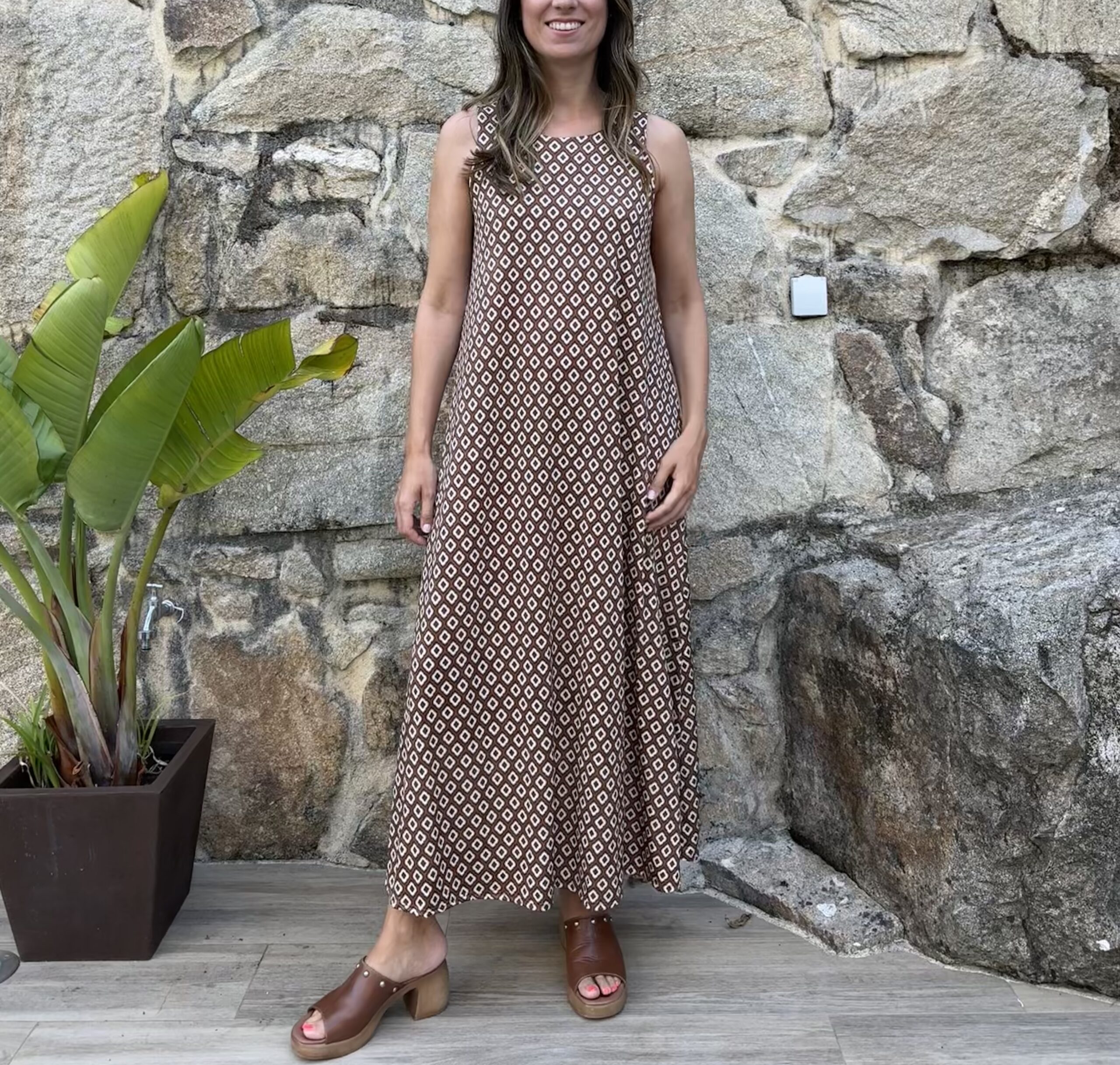 Déjate envolver por la suavidad y frescura de la seda fría con este vestido largo estampado que combina estilo, movimiento y comodidad en una sola prenda. Su corte fluido realza la silueta con naturalidad, mientras el estampado aporta un toque único y femenino.