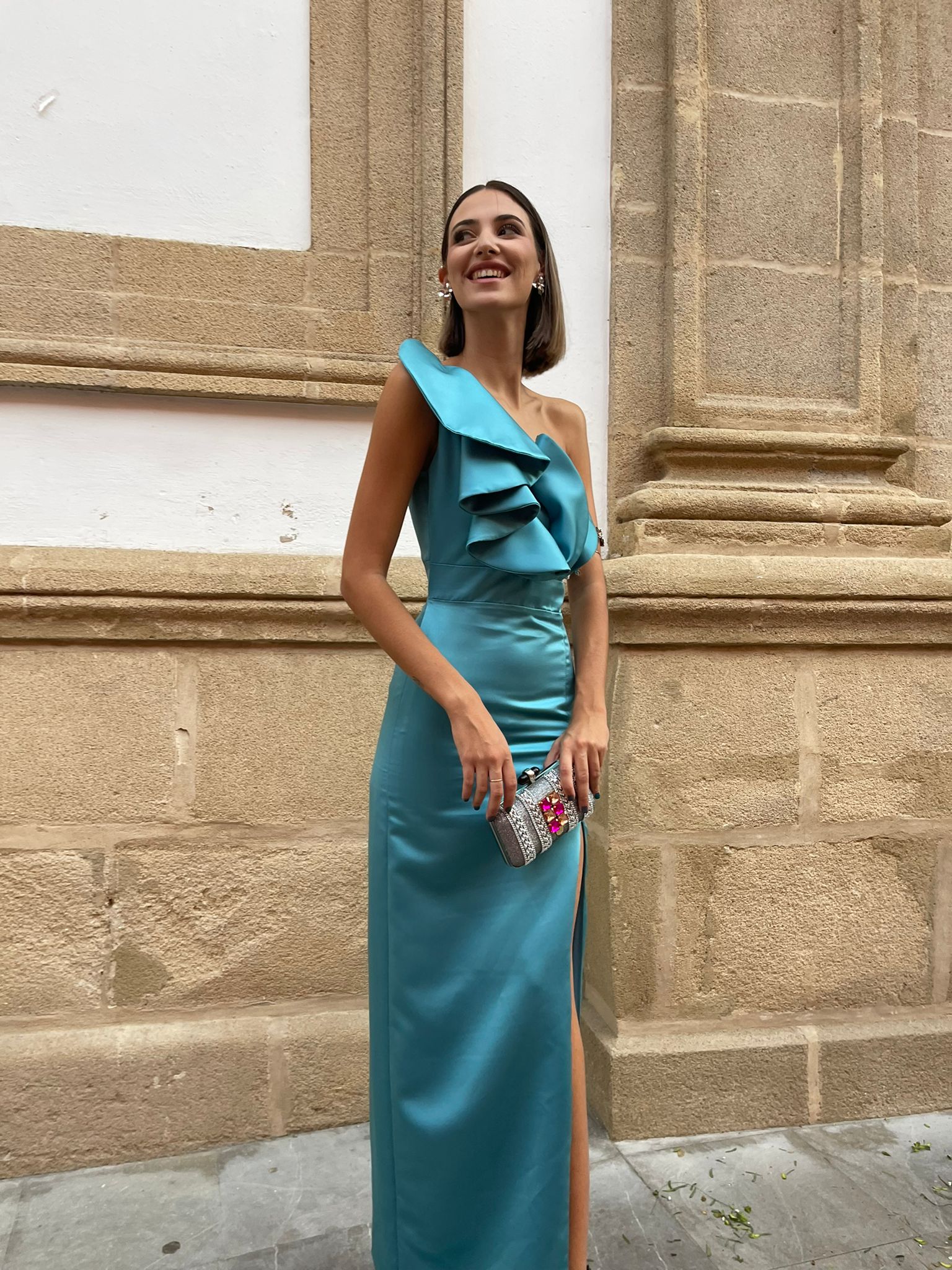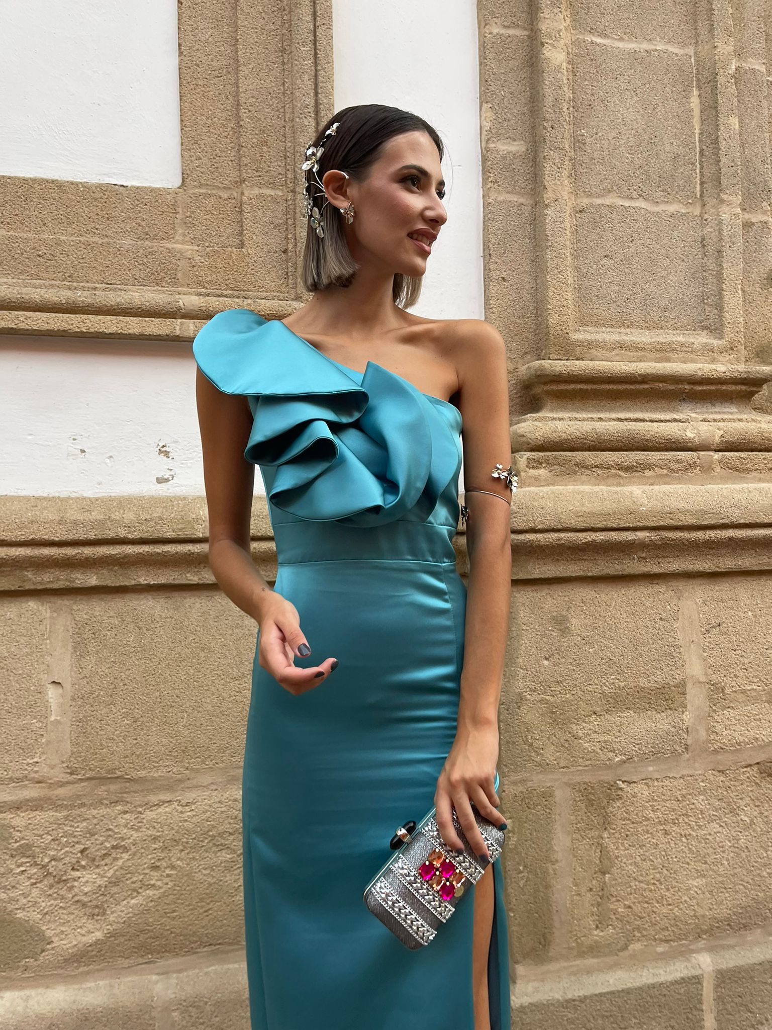 ▫️El vestido Sofía es un diseño muy especial, ya que combinamos cortes lineales con volúmenes en la parte del pecho. Cabe destacar su asimetría en la parte superior. Confeccionado en un tejido y color que hace de este una pieza única.
