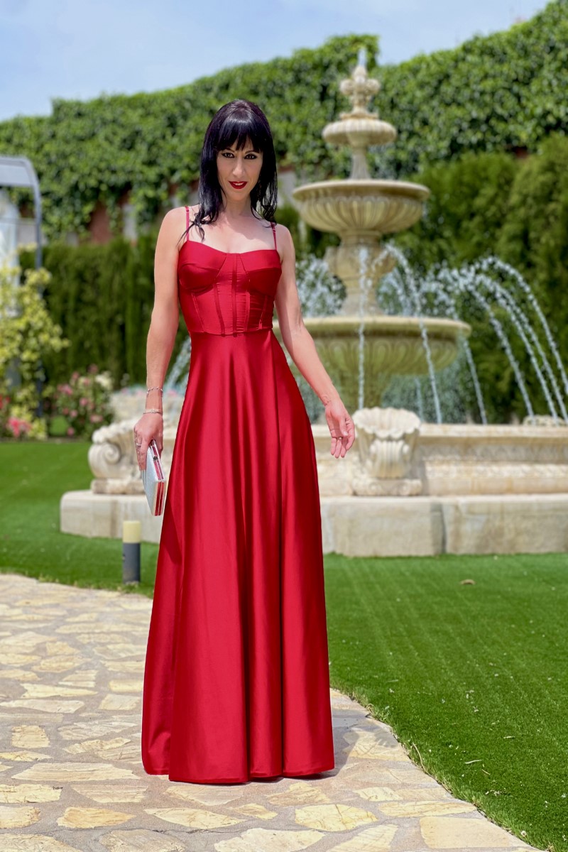 Una sutil abertura frontal añade un toque de glamour y movimiento, permitiéndote desplazarte con gracia y fluidez en cada paso que des. Ya sea para una boda, una gala o cualquier evento especial, el Vestido Tiana es la elección perfecta para aquellas mujeres que desean destacar con elegancia y distinción.