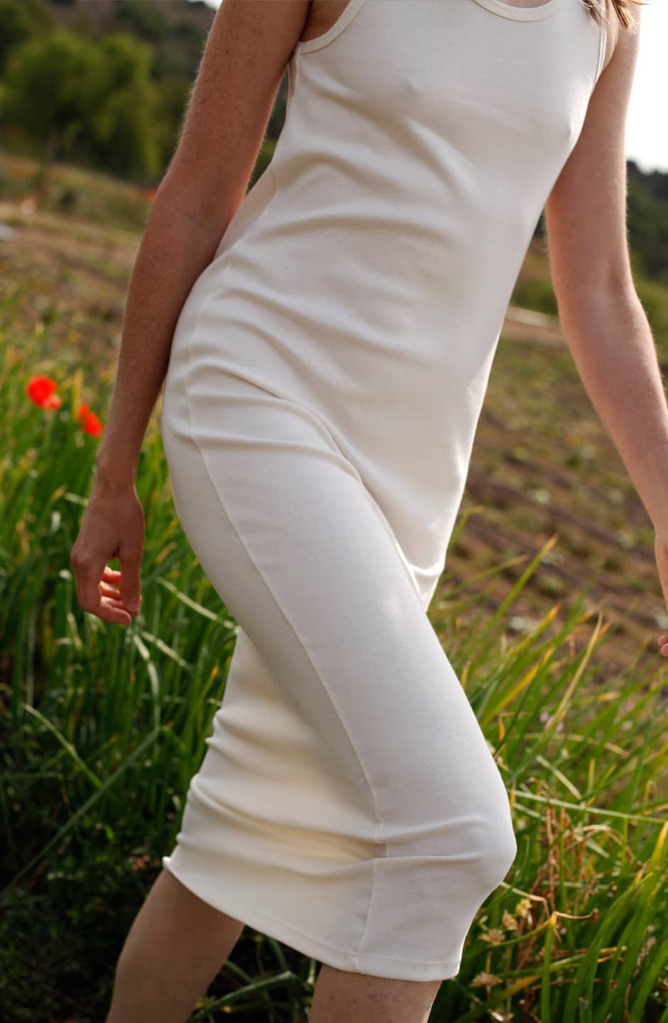 Vestido de tirantes de 100% algodón orgánico. Algodón puro en contacto con tu piel, sin elastano ni tintes. El color es el que crece directamente de la planta, sin procesos perjudiciales ni para ti ni para el entorno. Tejido suave y con una elasticidad perfecta para acompañarte sin que lo notes. Se amolda a tus volúmenes y te acompaña en tu día a día. A pesar de su largura, es muy cómodo para caminar, ya que la elasticidad del vestido se adapta a cada paso, con lo que te va a acompañar cómodamente en tus aventuras diarias. Este vestido es perfecto para alérgicos ya que solo está el mejor algodón orgánico en contacto con tu piel y a pesar de que no lo seas, va a hacer que toda tu piel y tu cuerpo respiren felices y libre de tóxicos. La parte superior, tiene el mismo corte que la camiseta Miguel. Este vestido va a acompañarte los días de calor y también puedes ponerlo interiormente en días más fríos. Solo hay disponibles 2 tallas. La talla M, abarca la talla S y la M y la talla L, abarca la L y la XL. Si te gusta que te quede más suelto, puedes elegir la talla más grande y de lo contrario, si te gusta más pegado, la más pequeña te irá bien, ya que al ser 100% algodón orgánico, se adapta muy bien al cuerpo y se funde con tus formas independientemente de tu talla.
