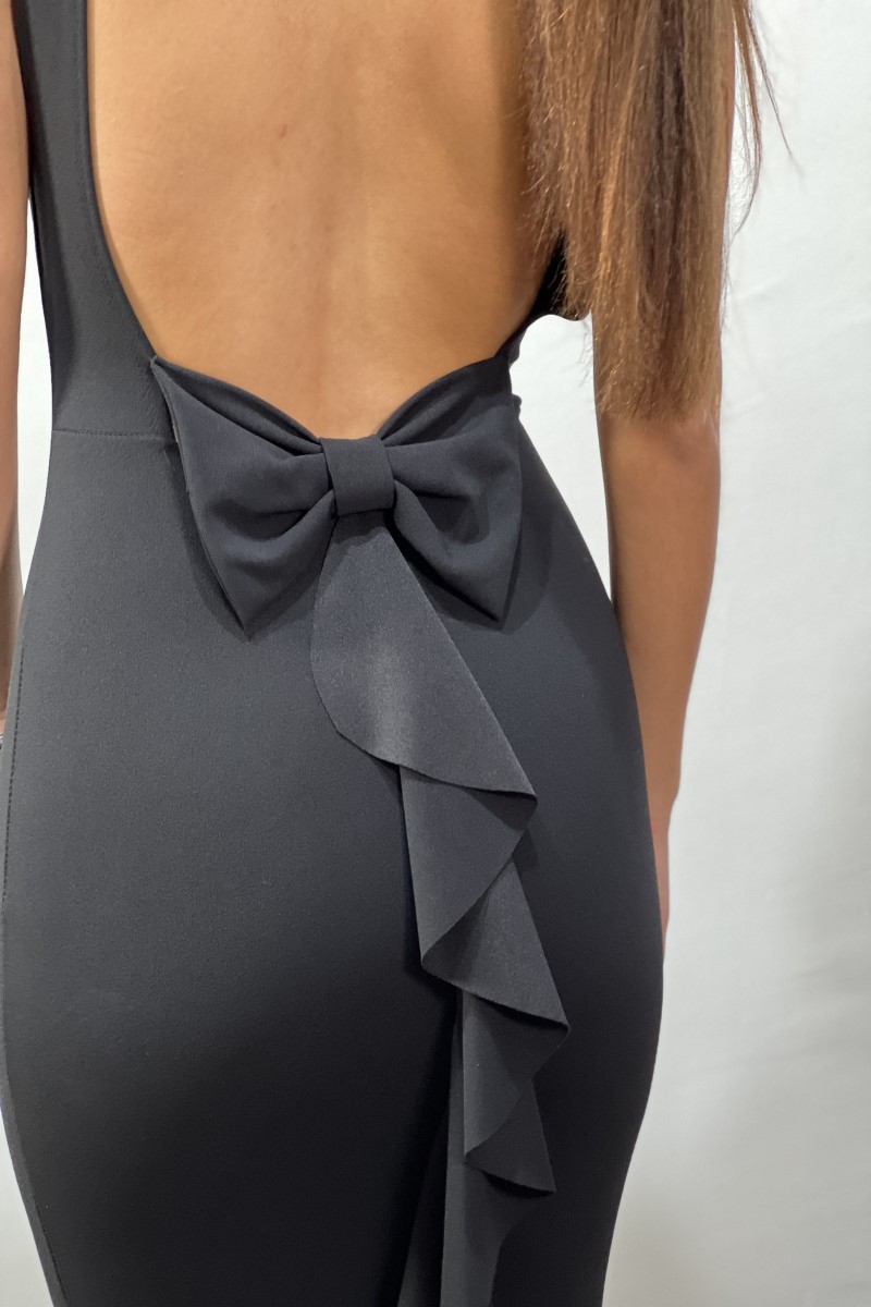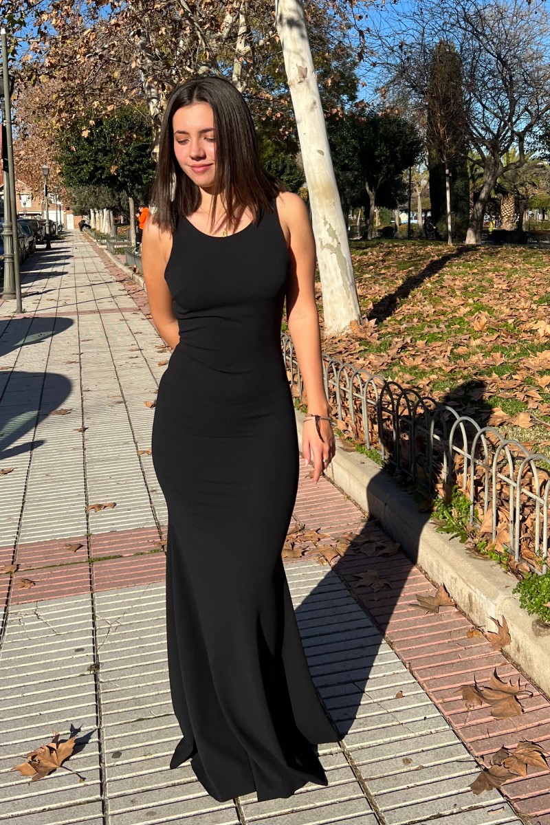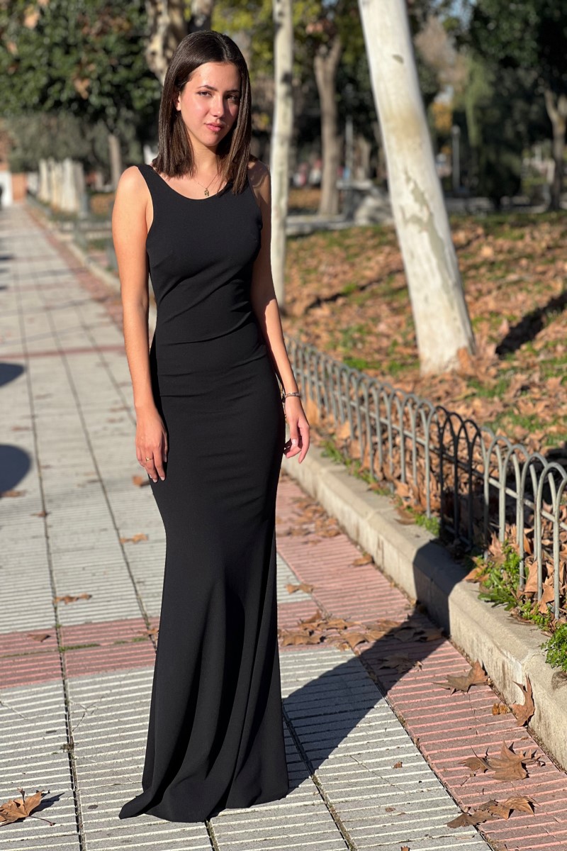 Vestido largo en forma de sirena,espalda descubierta con lazo trasero y cola de volantes, talla única de la 36 a la 40.
