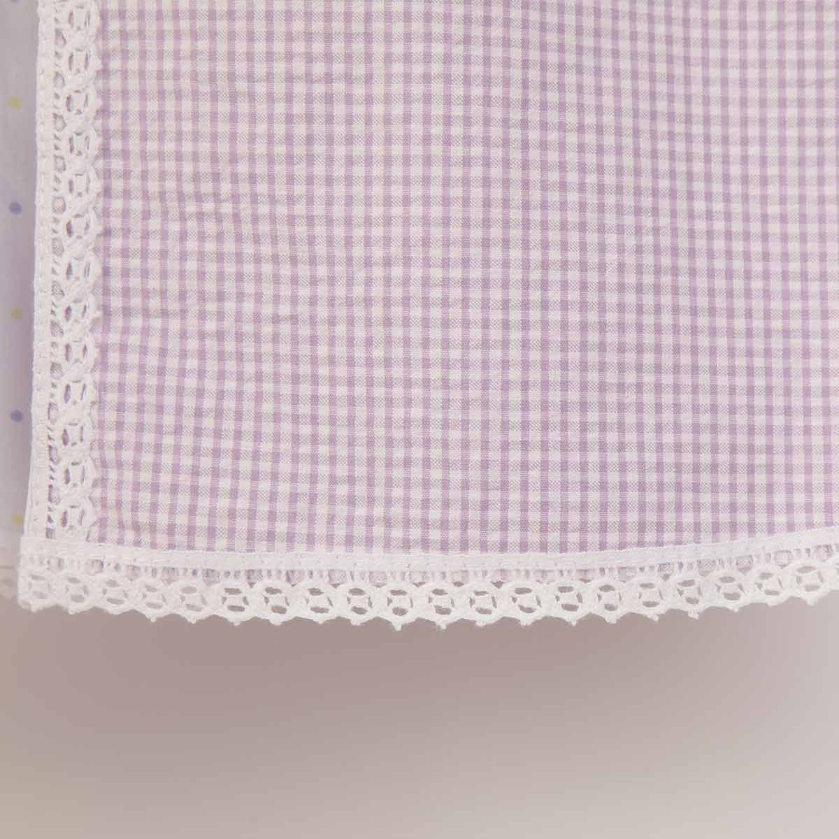 Vestido de niña en tono cuadros lilas con encaje en el centro y cuello detalles bolas de colores. Modelos perfecto para una ocasión especial. Confeccionado en tela 100% algodon.