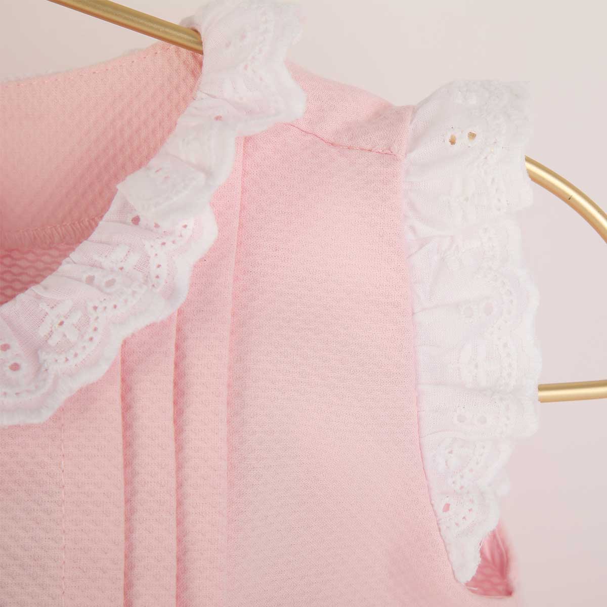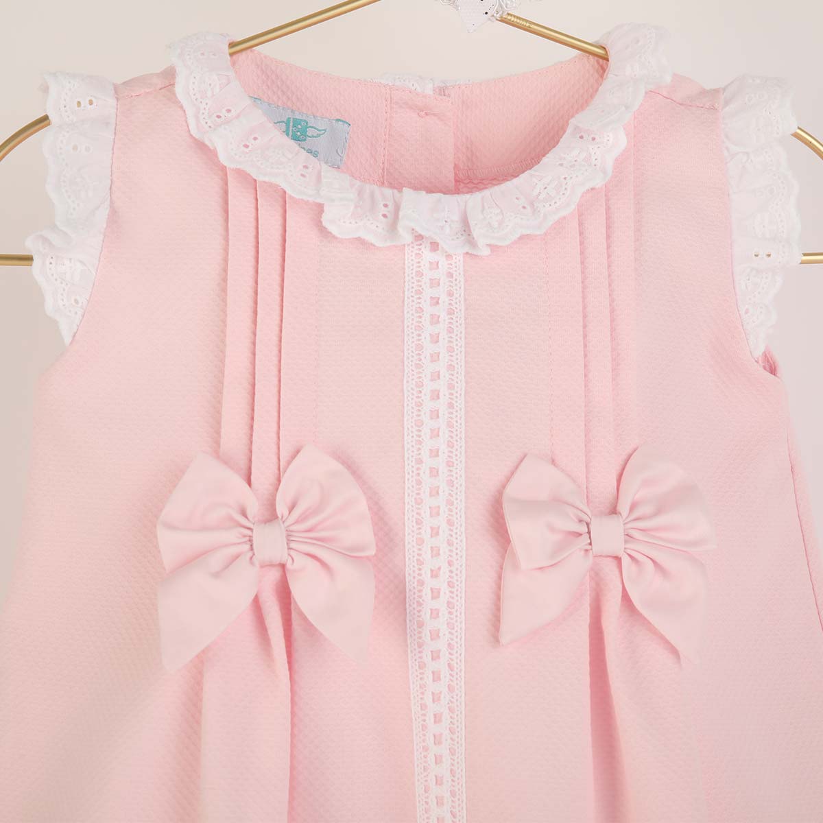 Vestido de niña en tono cuadros rosados con lazo en el centro. Un modelo especialmente para cada princesa. Confeccionado en tela 100% algodon.