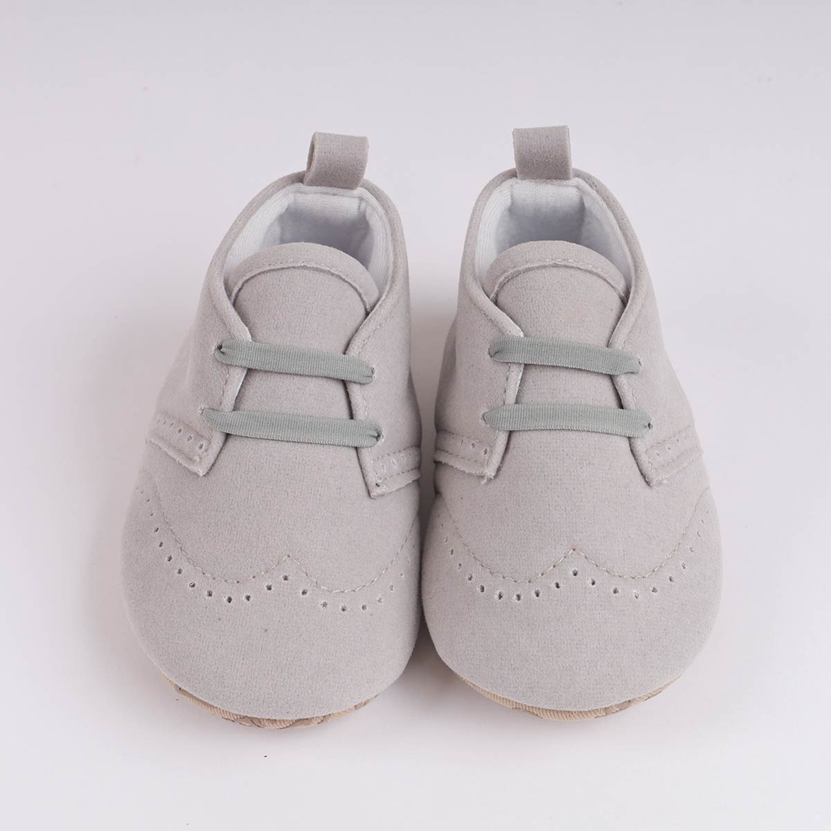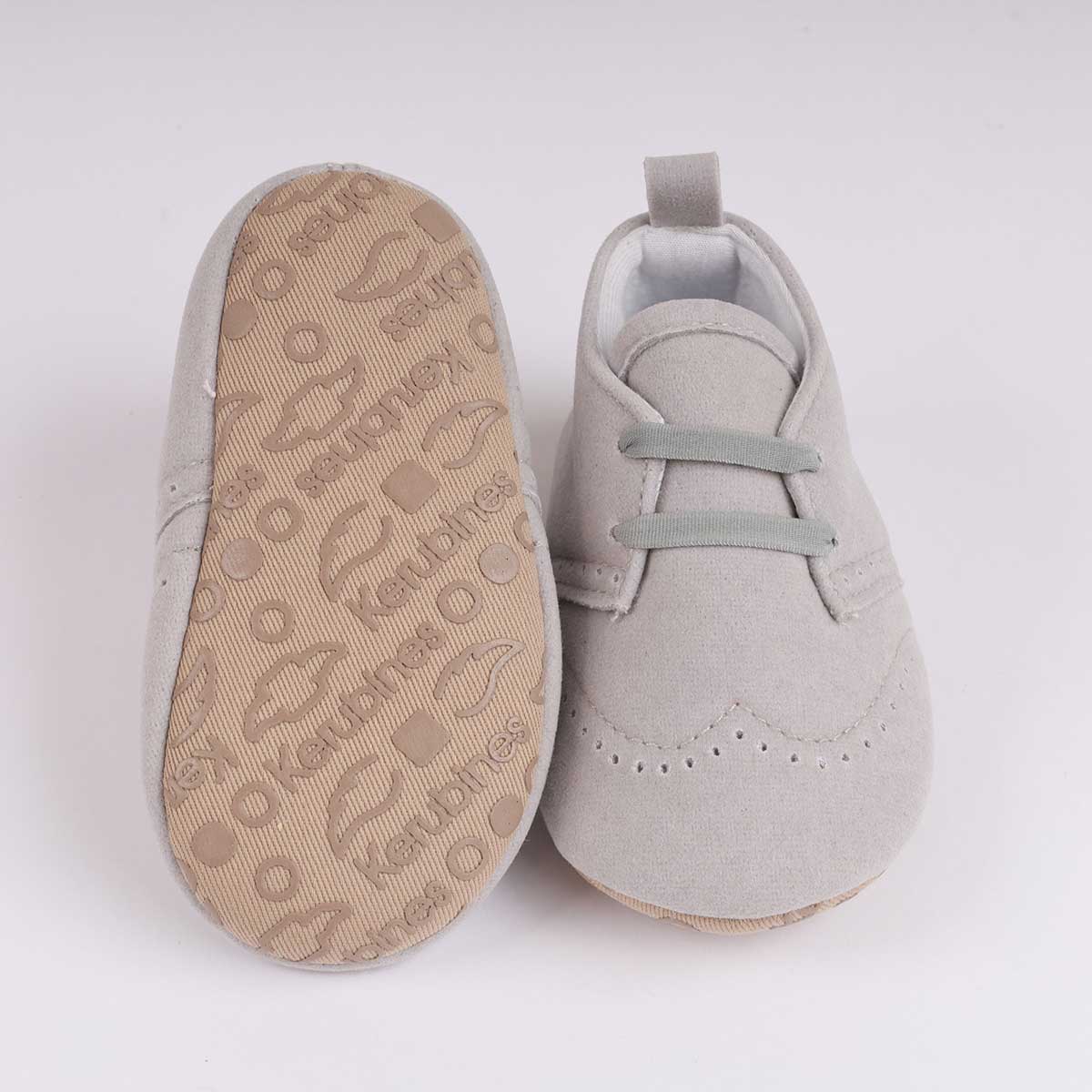Zapato de niño gris con pasador. Suave y comodo para caminar. Ideal para los primeros meses del bebé.